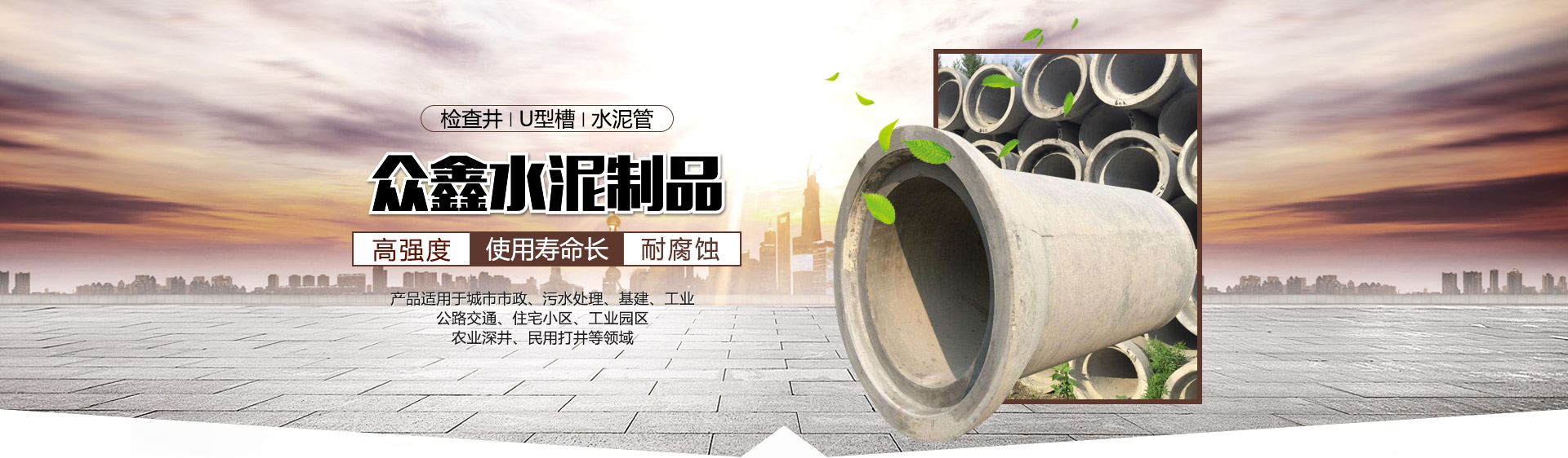 吉林眾鑫水泥制品有限公司,位于吉林省吉林市龍?zhí)秴^(qū)江北鄉(xiāng)官地村,交通便利,廠區(qū)占地面積2萬余平,公司秉承客戶至上,信譽為首,以人為本,安全為先為經(jīng)營理念,其主要生產(chǎn)各種規(guī)格的平口和承插口鋼筋混凝土排水水泥管,水泥預制檢查井、u型槽等水泥制品。適用于城市市政、污水處理、基建、公路交通、住宅小區(qū)、工業(yè)園區(qū)、工業(yè)、農(nóng)業(yè)深井、民用打井等領域。